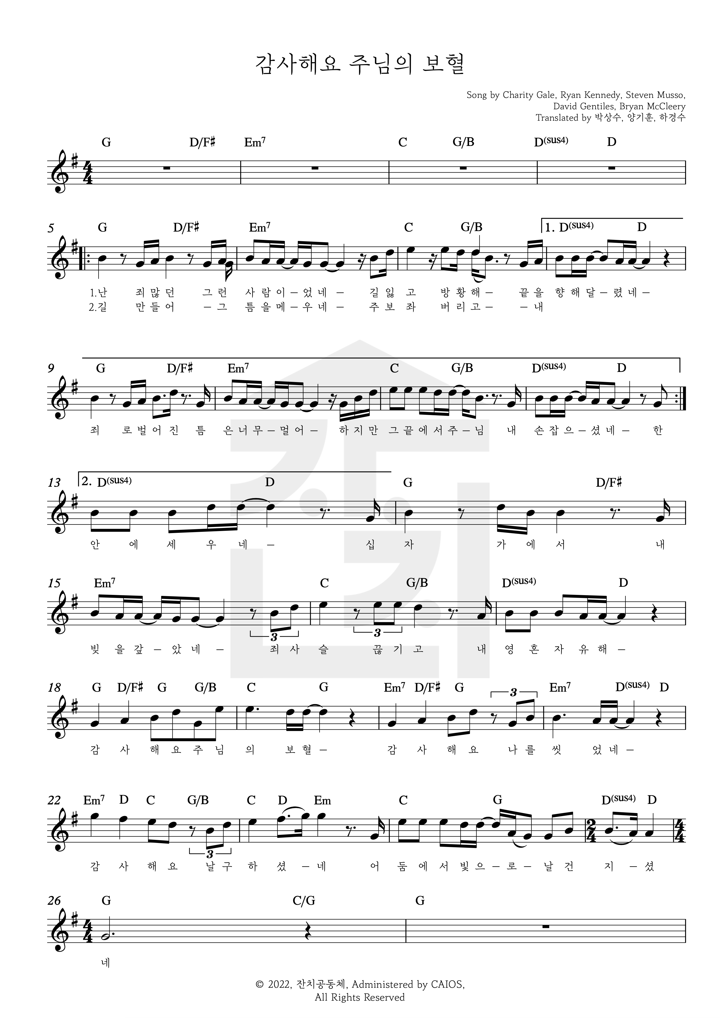 감사해요 주님의 보혈 (Bb, C, G key) 악보1집 'Day of Feast' 악보 모음 2022. 11. 22. 21:08
