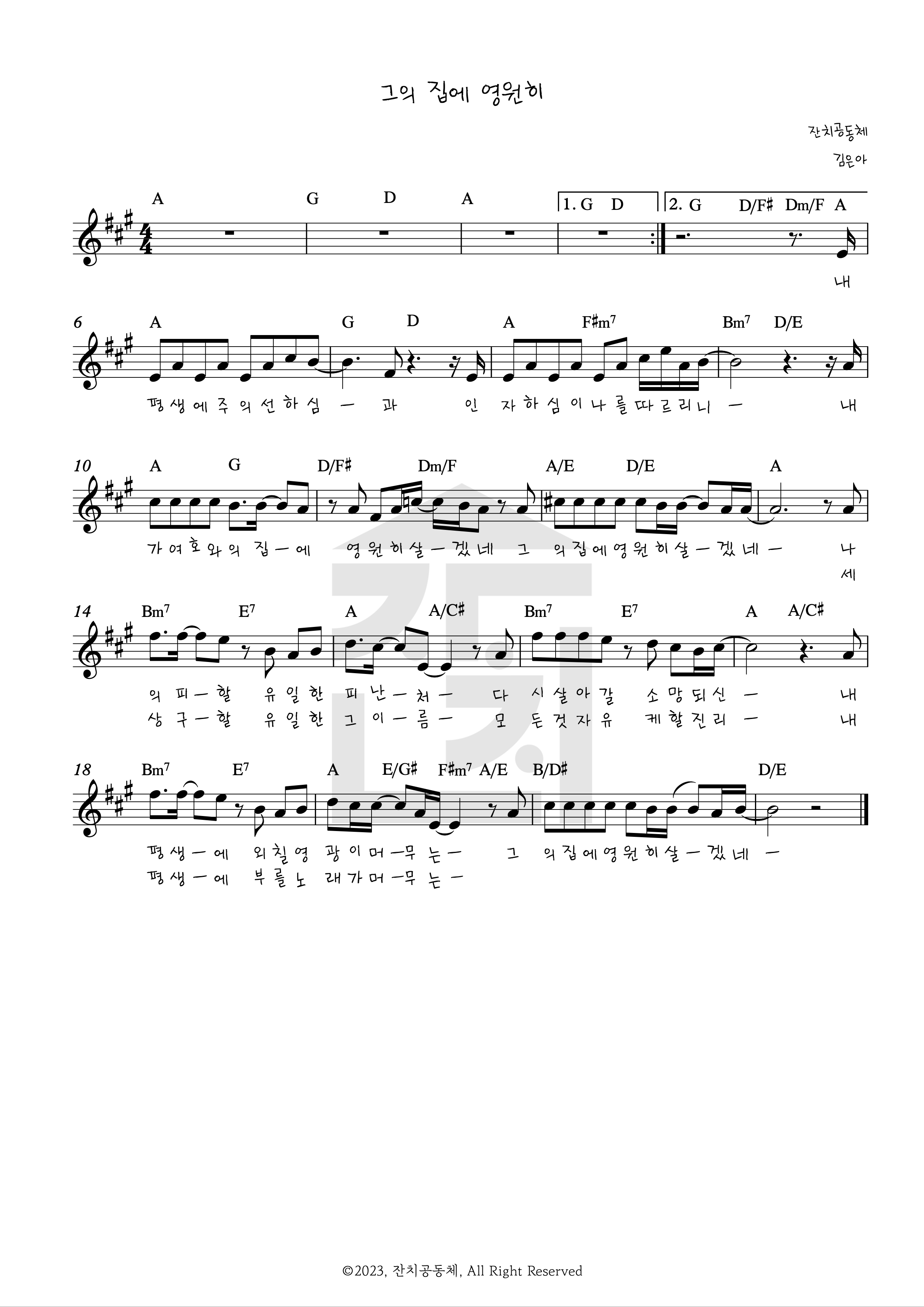 그의 집에 영원히 (A, E, F key) 악보'Love Feast' 악보모음 2023. 9. 11. 11:08