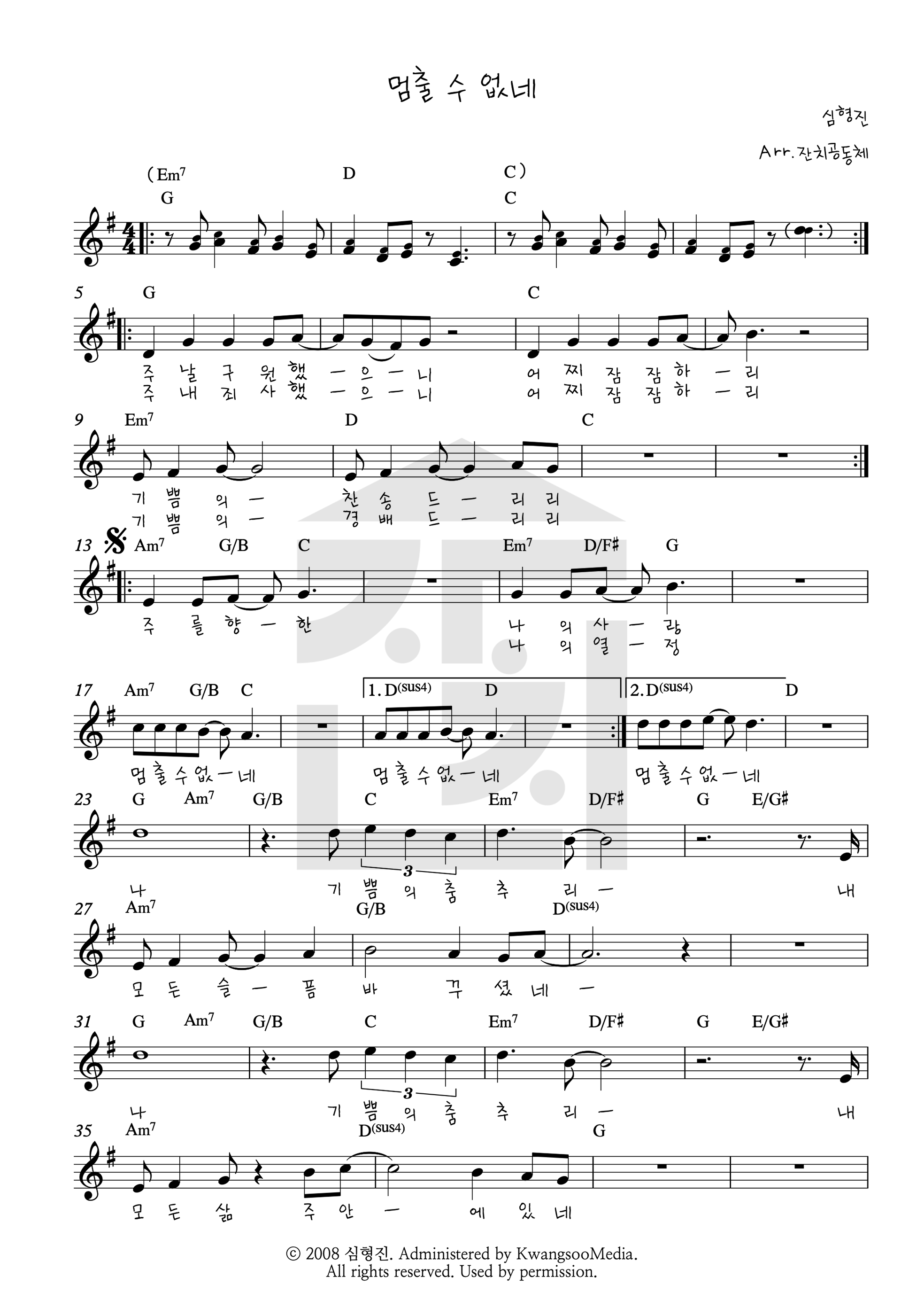 멈출 수 없네 악보 (G key)'Mercy Seat' 악보모음 2025. 3. 4. 14:13