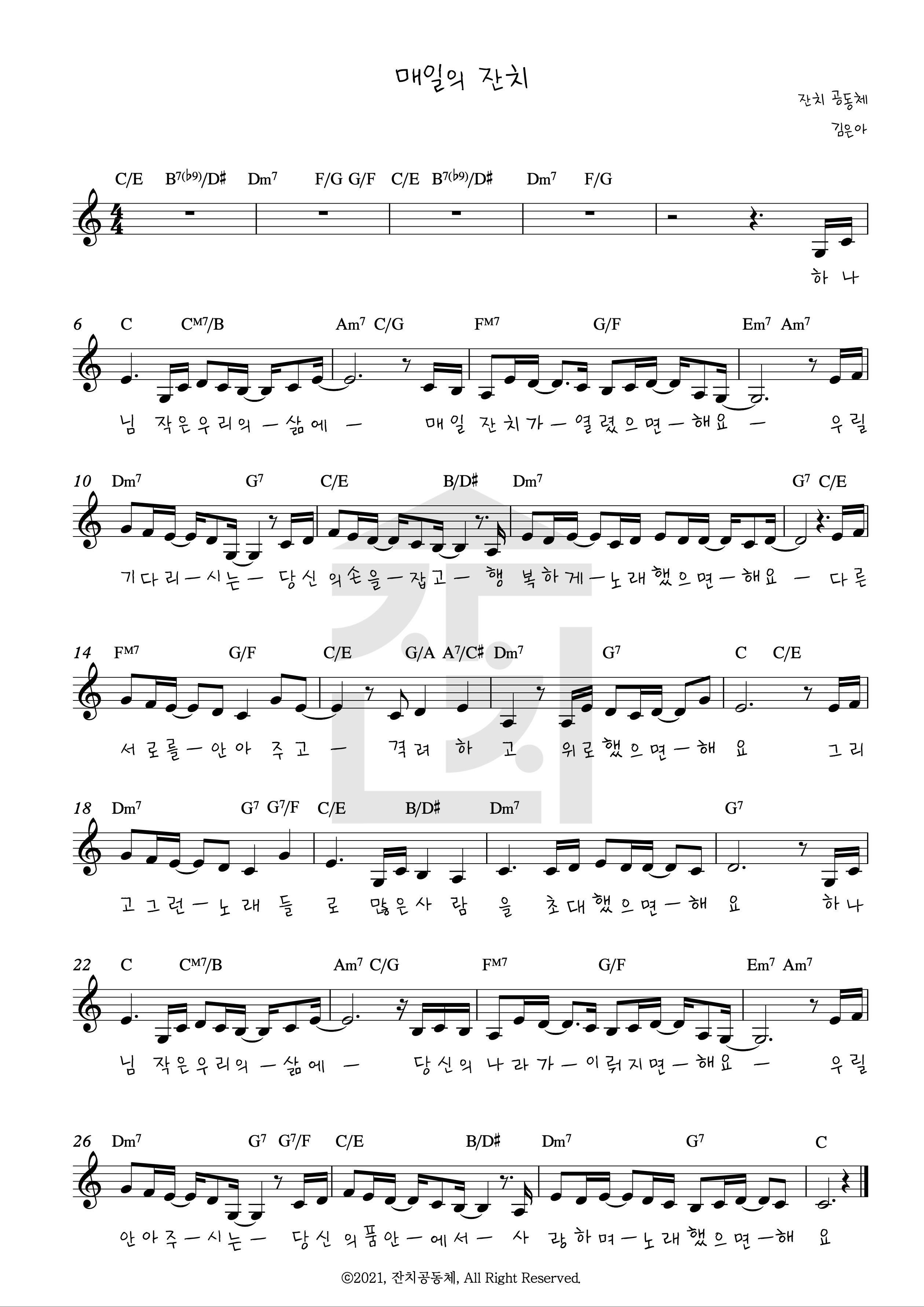 매일의 잔치 (C Key) 악보Single Album 악보 모음 2022. 8. 19. 01:38
